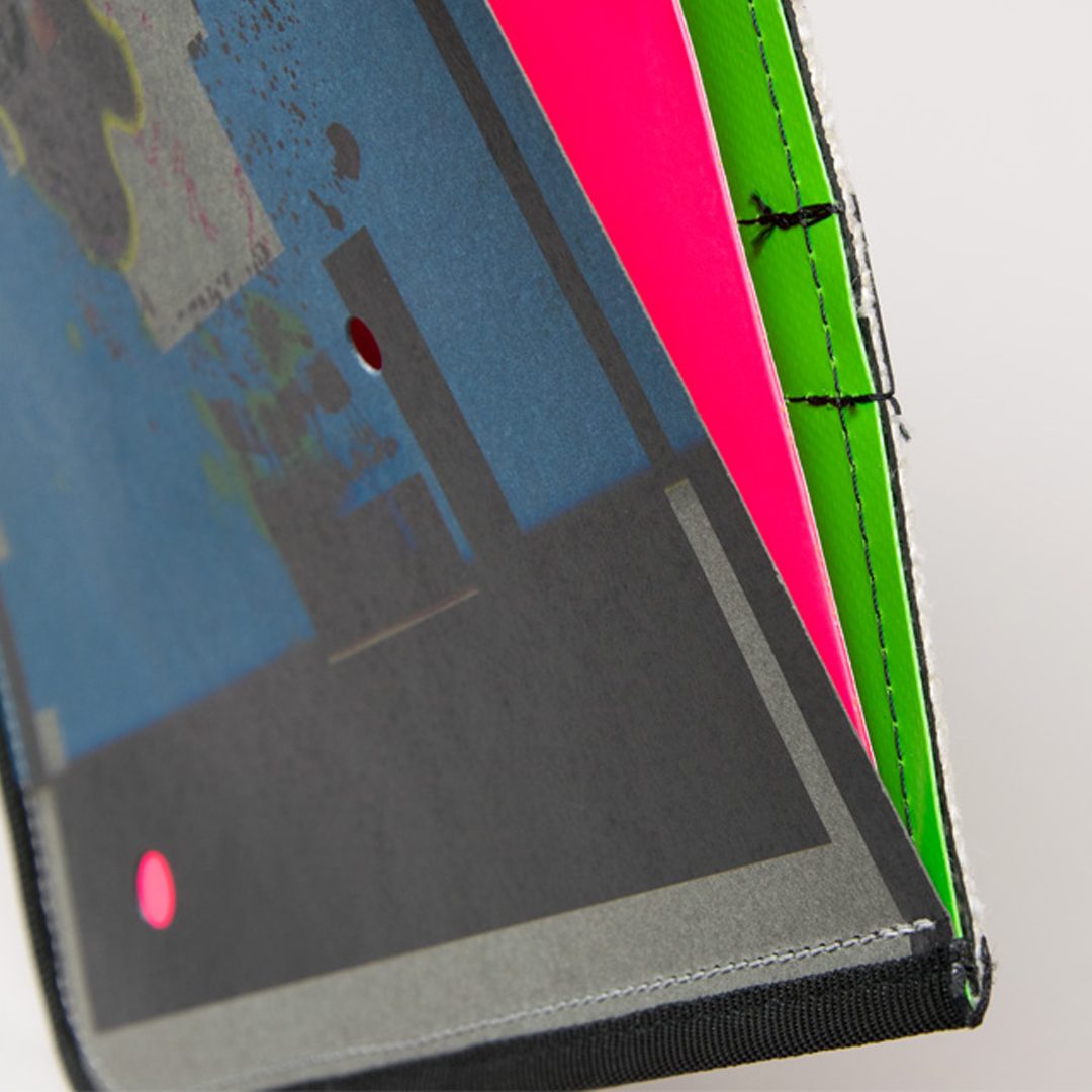 Recordsleeve – genäht aus LKW-Plane, Feuerwehr-, und Fahrradschlauch.