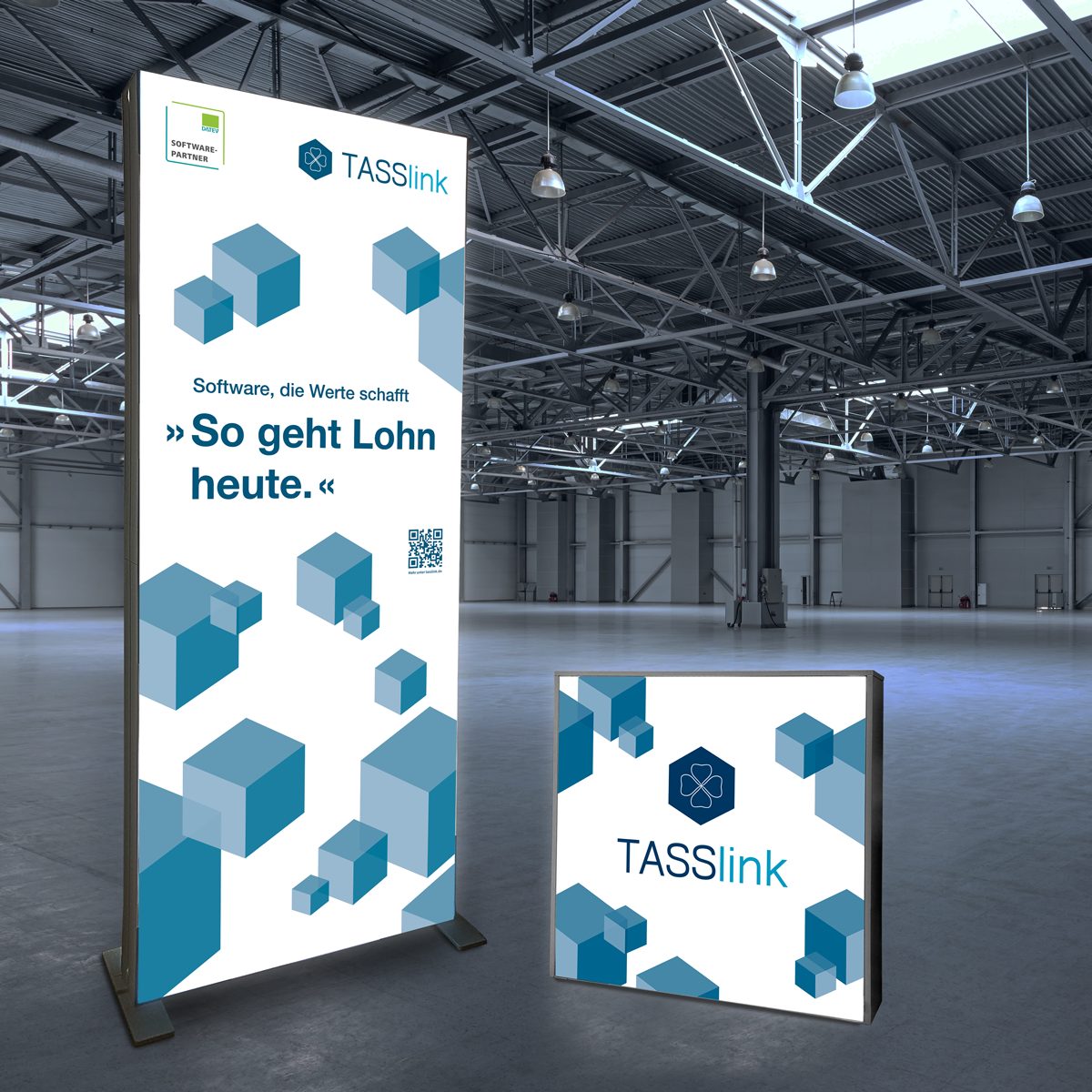 Für unseren Kunden, die TASSlink GmbH, haben wir einen neuen Messeauftritt gestaltet.